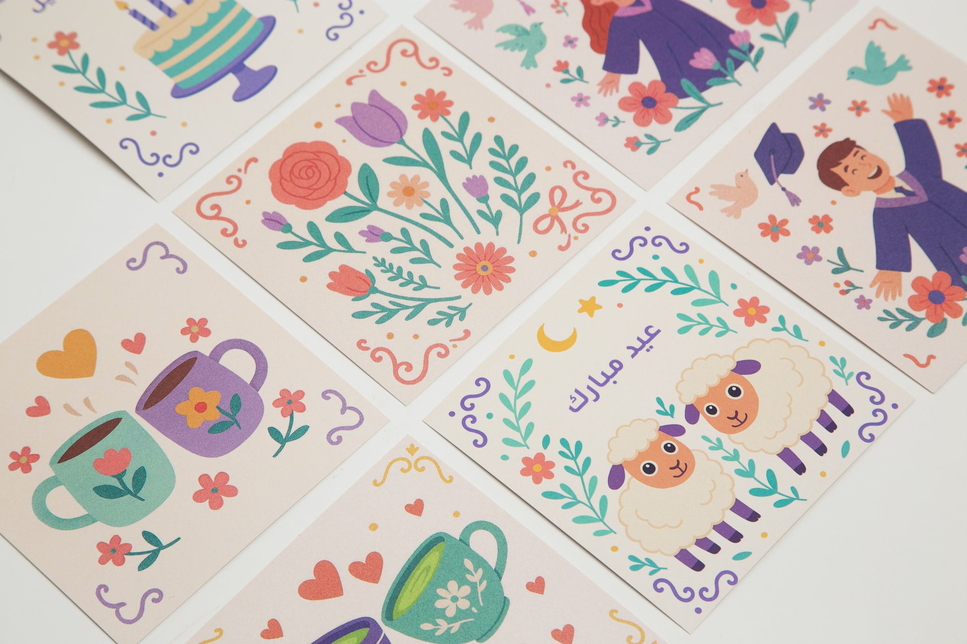بطاقات المعايدة المتنوعة لإضافتها فيه طلبك, مثالية لأي مناسبة, مع مساحة للتعبير عن مشاعرك!