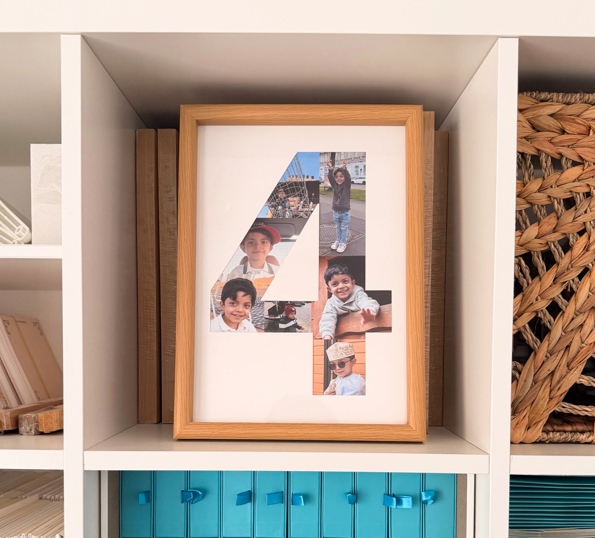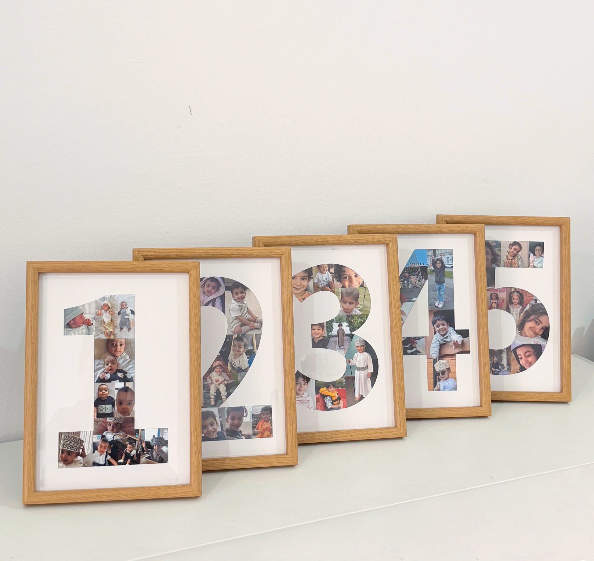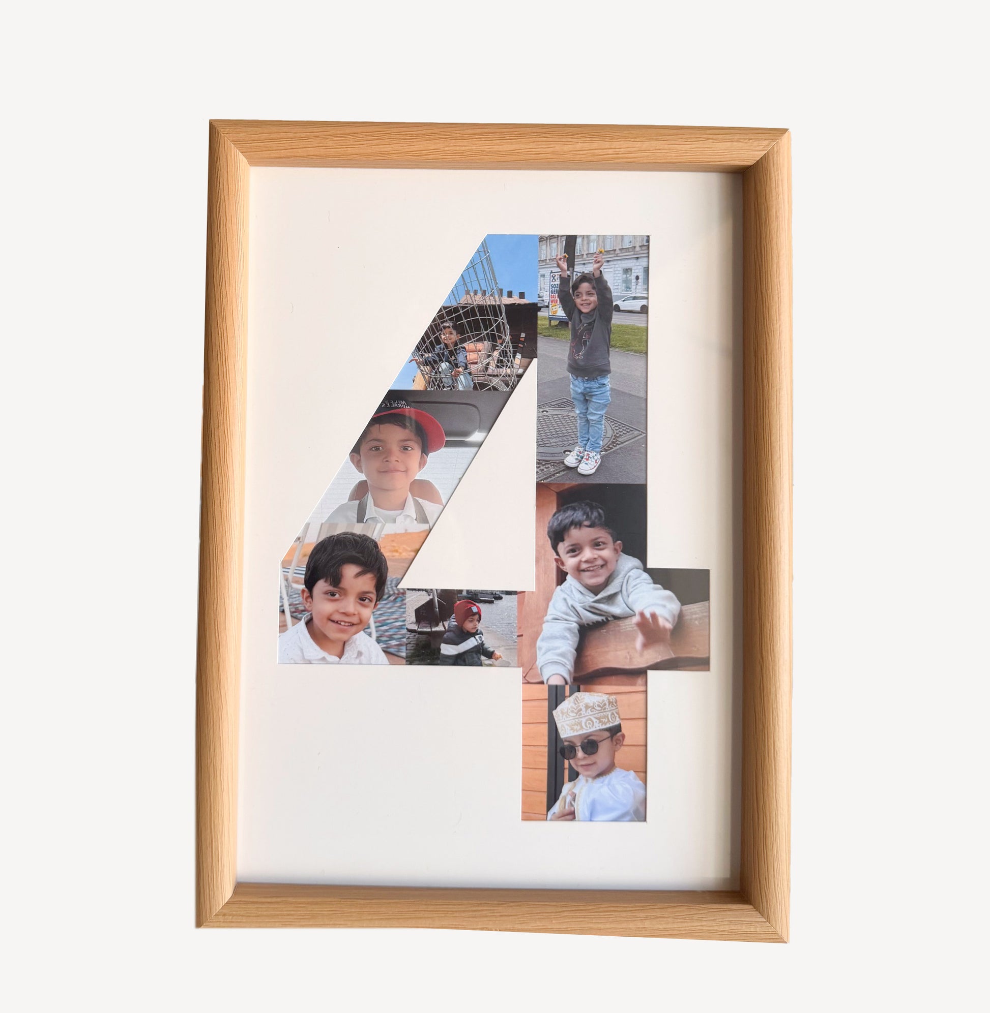 إطار صور خشبي مصمم خصيصاً، يتميز بتصميم كولاج لصور مختلفه على شكل رقم.